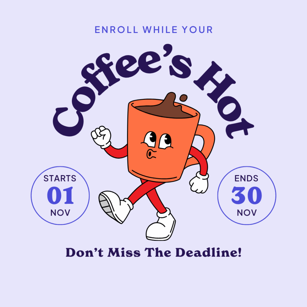 Coffee-cup sleeves with a friendly nudge: “Don’t miss the deadline — enroll while your coffee’s hot!”