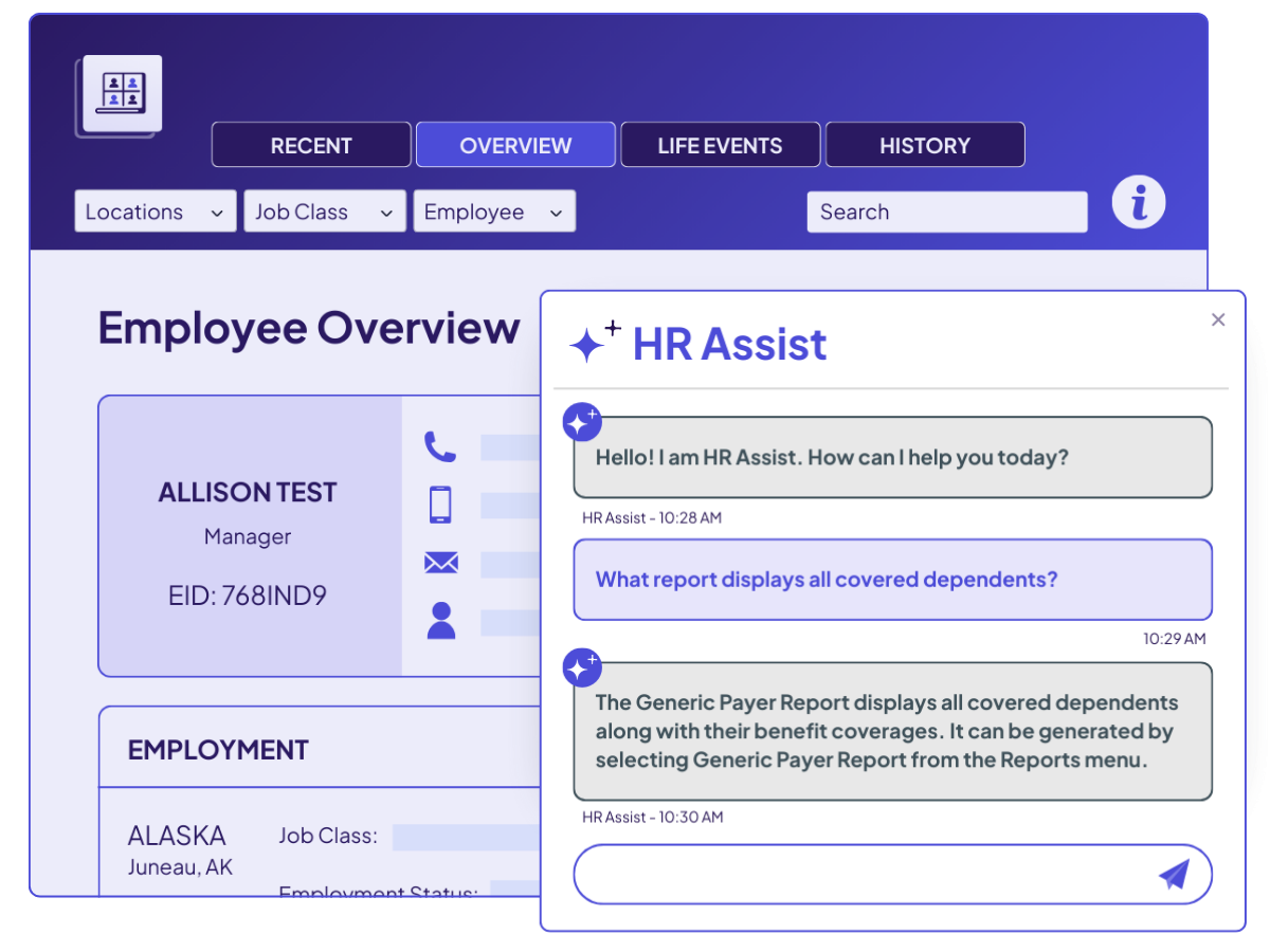 HR Assist is now part of BenSelect, delivering AI-powered support right where admins need it. HR Assist gives admins instant, conversational guidance to everyday system questions — no emails, no calls, no second-guessing. It’s like having a seasoned team member on call 24/7, helping HR teams find trusted answers fast, onboard new users smoothly, and reduce daily disruptions.