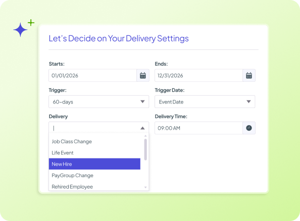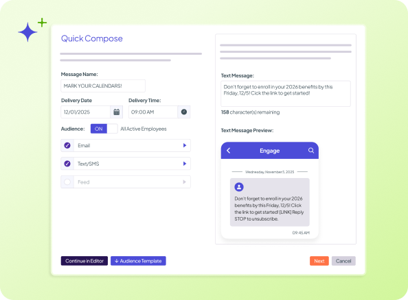 Yes. Engage automates communication based on real employee moments — like open enrollment, life events, eligibility changes, and reminders — using the same underlying benefits data that powers administration. Because Engage operates alongside benefits administration, messages are triggered by what’s actually happening, not by manual scheduling or guesswork.