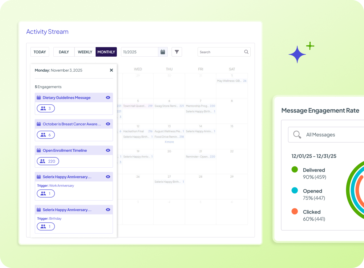 Selerix Engage supports continuous, year-round benefits communication — not just enrollment reminders. Messages stay connected to employee eligibility, benefits status — and real-world moments like birthdays or work anniversaries —, helping understanding build over time instead of starting from scratch every year.